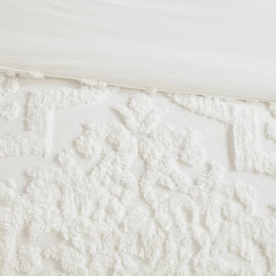 The 3pc Eugenia Tufted Cotton Chenille Damask Comforter Set offers the perfect touch of elegance to your bedroom décor. A damask chenille design is beautifully displayed the 100% cotton face of the white comforter, while matching shams complement the top of the bed for stunning blend of shabby chic and traditional styles. All season use comforter filling for warmth and comfort, this cotton chenille comforter set brings true beauty and grace to your bedroom. Due to the nature of the chenille fabric, some shedding will occur naturally in the first 3-4 washes.