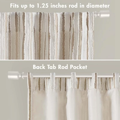 Experience the perfect blend of rustic charm and modern elegance with our Madison Park Taylor window panel. This Casual Farmhouse Style window panel showcases an unique pieced clip jacquard pattern in a striking white and natural two-tone stripe effect, adding depth and character to any room. The textured design is fashioned from durable polyester cationic dye clipped jacquard, ensuring longevity and ease of maintenance. With its light-filtering capabilities, this window panel artfully balances privacy and natural light, creating a warm, inviting ambiance. Finished with a rod pocket and back tab, it is designed for easy hanging and adjustments. Whether you’re revamping your living space or simply want to add a touch of farmhouse charm, this window panel is an excellent choice. Window panels sold individually; 2 panels are reccomended for standard coverage. Coordinating bedding available and sold separately.