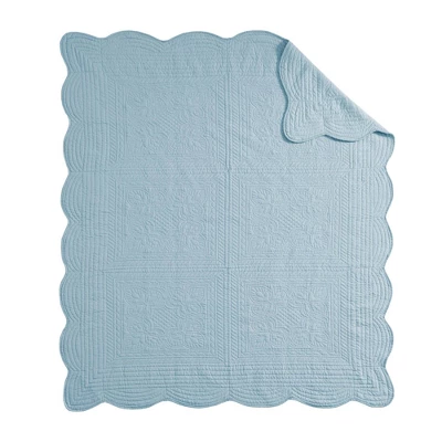 The Madison Park Genoa is the perfect quilted throw for a new solid look. The decorative stitch pattern pairs easily with your existing decor and will sure to add a new decorative element with the beautiful scalloped edges. This quilted throw is filled with cotton filling and features a polyester microfiber fabrication on the face and the reverse. Its prewashed finish gives a worn in appearance to this decorative throw.