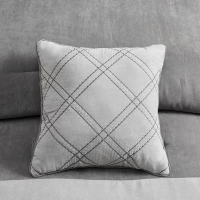 The Noah 7 Piece Microsuede Comforter Set brings a rich and elegant update to your bedroom. This microsuede comforter and 2 matching shams feature a unique pieced color blocking design to create a luxurious modern allure. A solid bed skirt coordinates handsomely with the comforter, while 3 decorative pillows provide textural finishing touches to the hotel style comforter set. Machine washable for easy care, this transitional style comforter has an antimicrobial odor protection treatment that provides built-in freshness protection, inhibits growth of odor causing bacteria, and keeps the fabric newer, longer. Items in the set may come in a rolled or compressed packaging, which will need to be fluffed up or steam ironed before use to remove wrinkles.