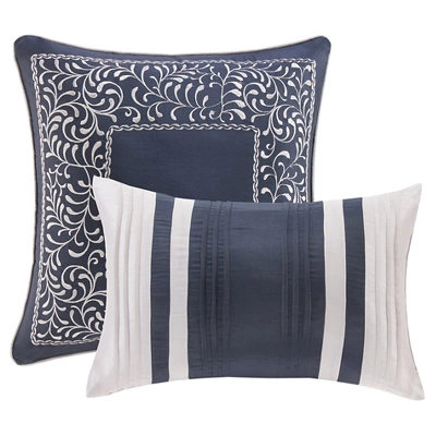 - Includes: comforter, 2 shams, bedskirt, 2 Euro shams & 2 decorative pillows