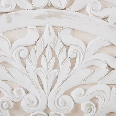 • Intricate off white medallion carved design in durable resin material for a unique 3D effect